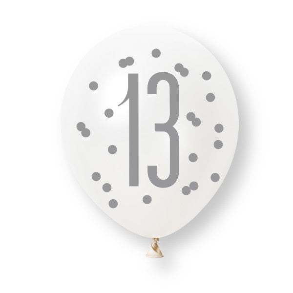 Contains six 12" latex balloons in a mix of white and two shades of blue colours with 13 print.
