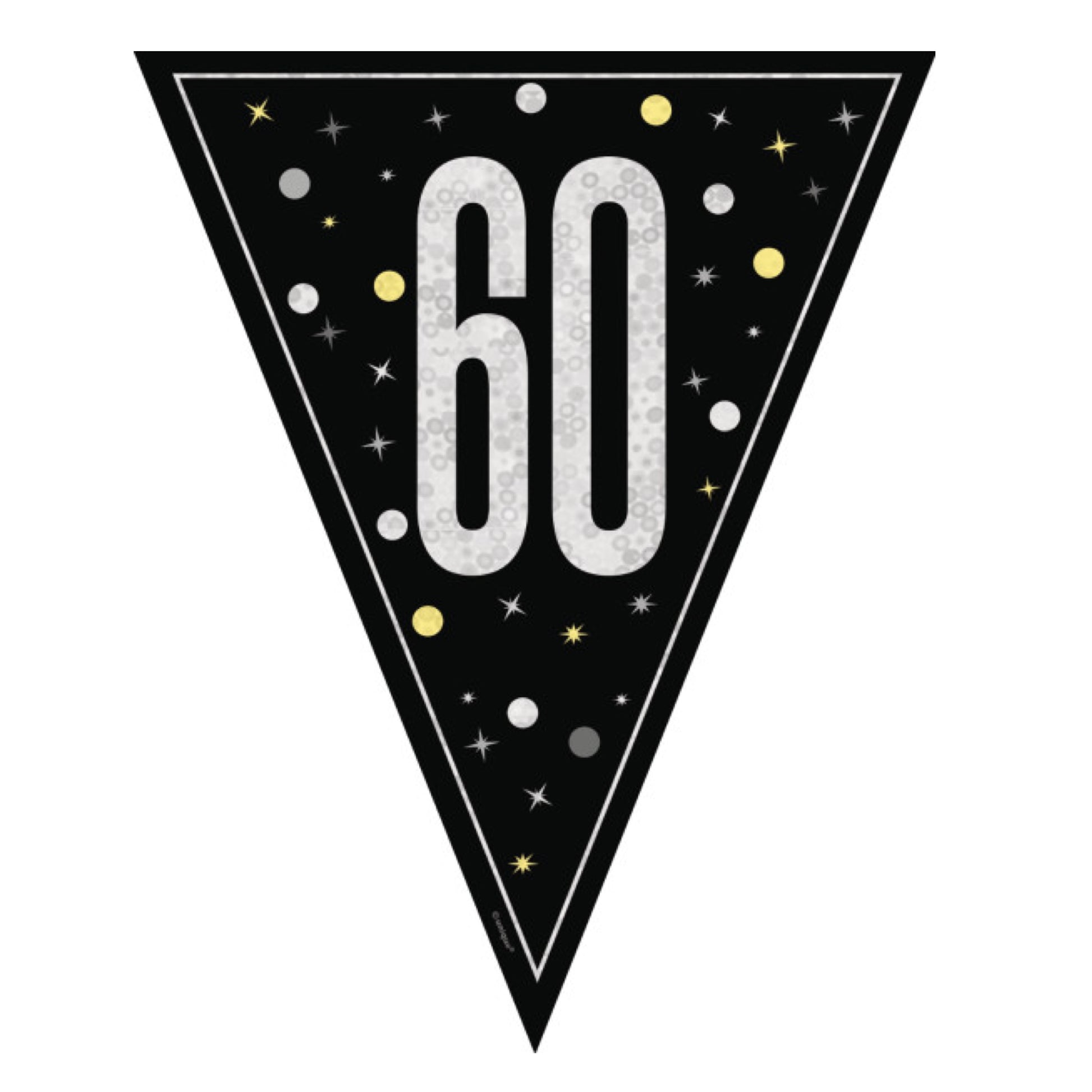 Large black, silver and gold 60th Birthday bunting with a holographic finish