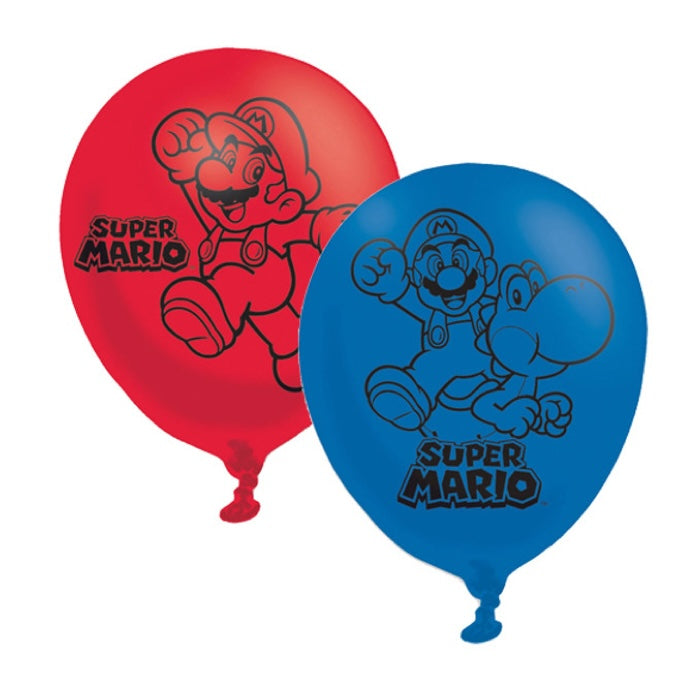 Red and blue Mario Brothers latex balloons
